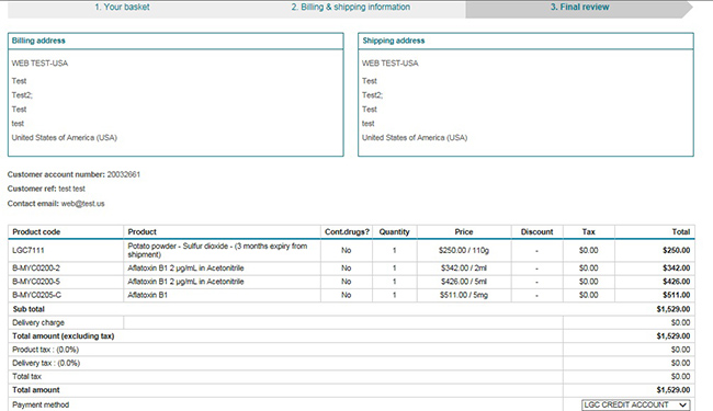 - Select “Invoice” payment method to place orders on LGC credit account – as normal