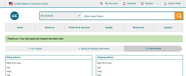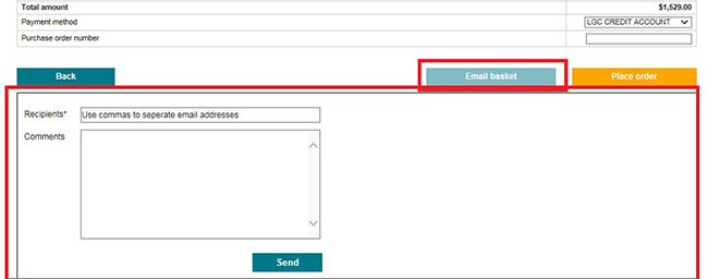 In some cases, where ERP requisitions are not required, users just need to confirm the basket or get an approval for the order before placing online at lgcstandards.com. LGC provide an email basket feature which emails the full contents and price breakdown of the basket to desired recipients.